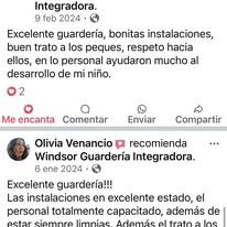 “Excelente guardería, bonitos espacios, buen trato a los peques y mucho respeto. En lo personal ayudaron mucho al desarrollo de mi niño.”
